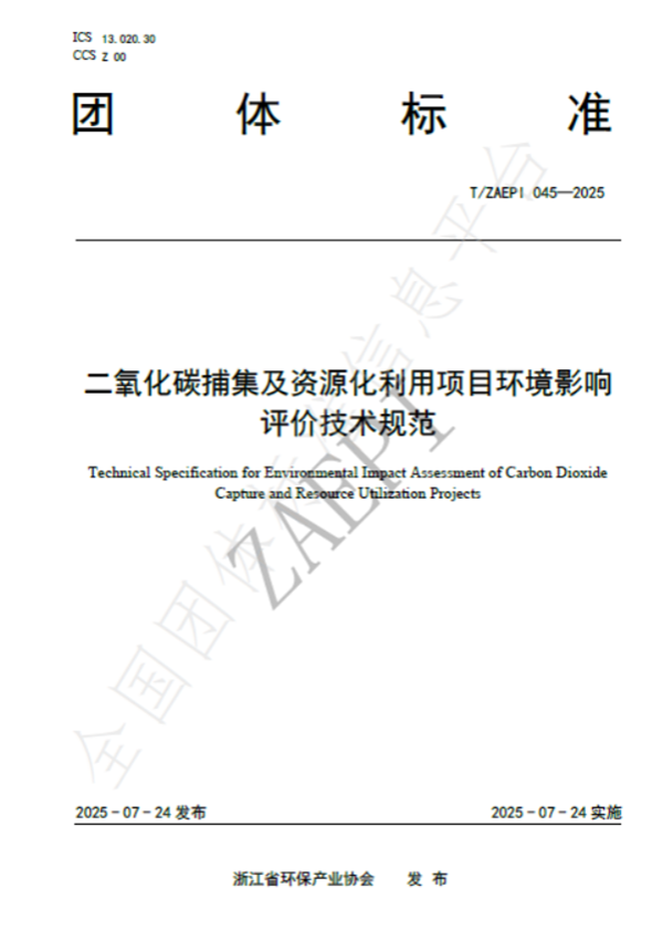 2025年7月24日,由浙江省環(huán)保集團生態(tài)環(huán)保研究院牽頭制定的《二氧化碳捕集及資源化利用項目環(huán)境影響評價技術(shù)規(guī)范》(T/ZAEPI 045-2025)團體標(biāo)準(zhǔn)正式發(fā)布并實施。該標(biāo)準(zhǔn)由浙江省環(huán)保產(chǎn)業(yè)協(xié)會歸口管理,聯(lián)合省內(nèi)多家環(huán)保領(lǐng)域骨干企業(yè)共同起草,填補了工業(yè)領(lǐng)域二氧化碳捕集及資源化利用項目環(huán)評技術(shù)規(guī)范的空白。
